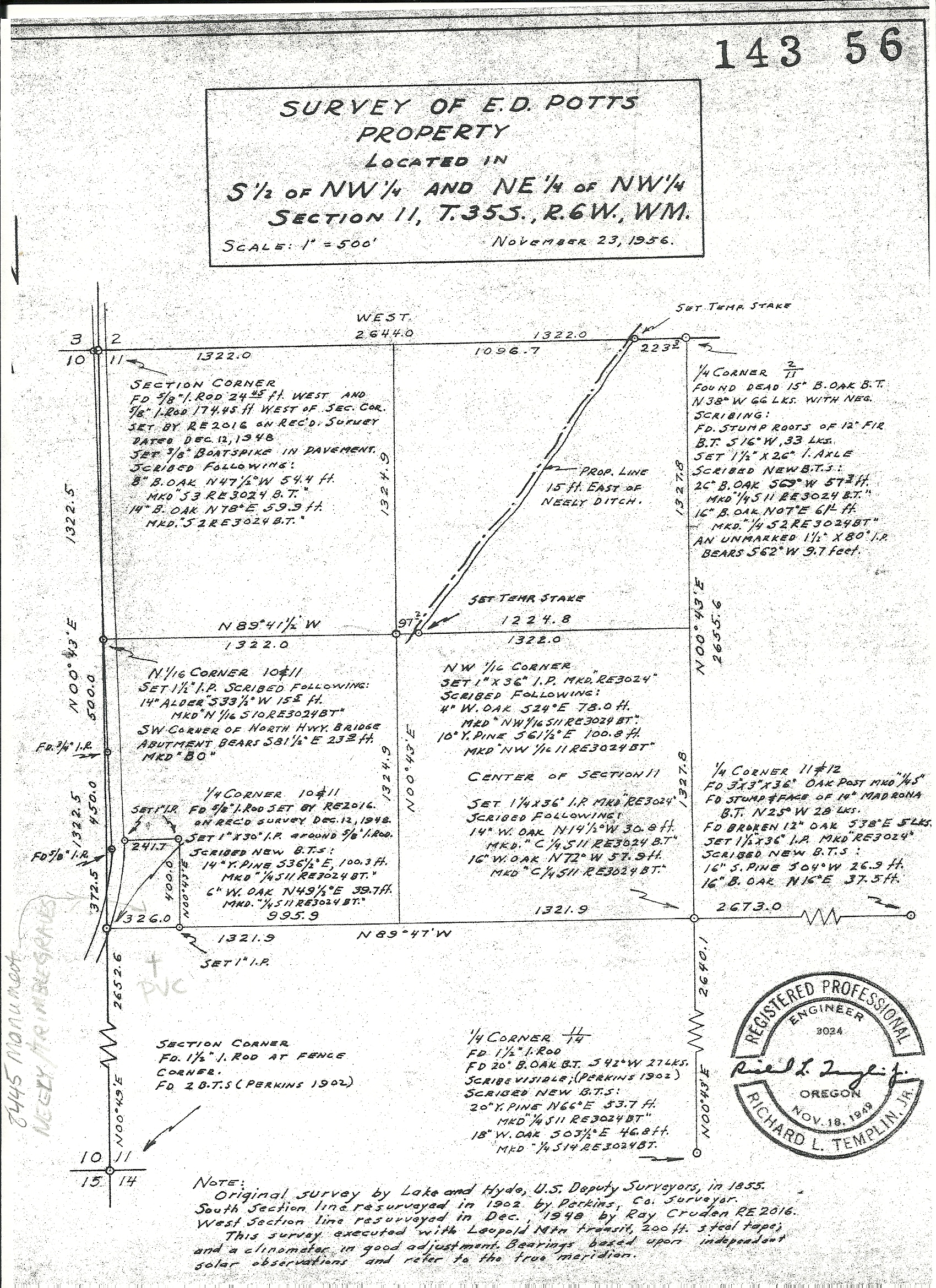 Map 1. Survey Of E. D. Potts Property in Josephine CO: 1956